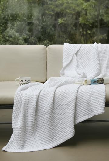 Soft, stonewashed and naturally textured, this honeycomb fabric envelops you in warmth and comfort.
