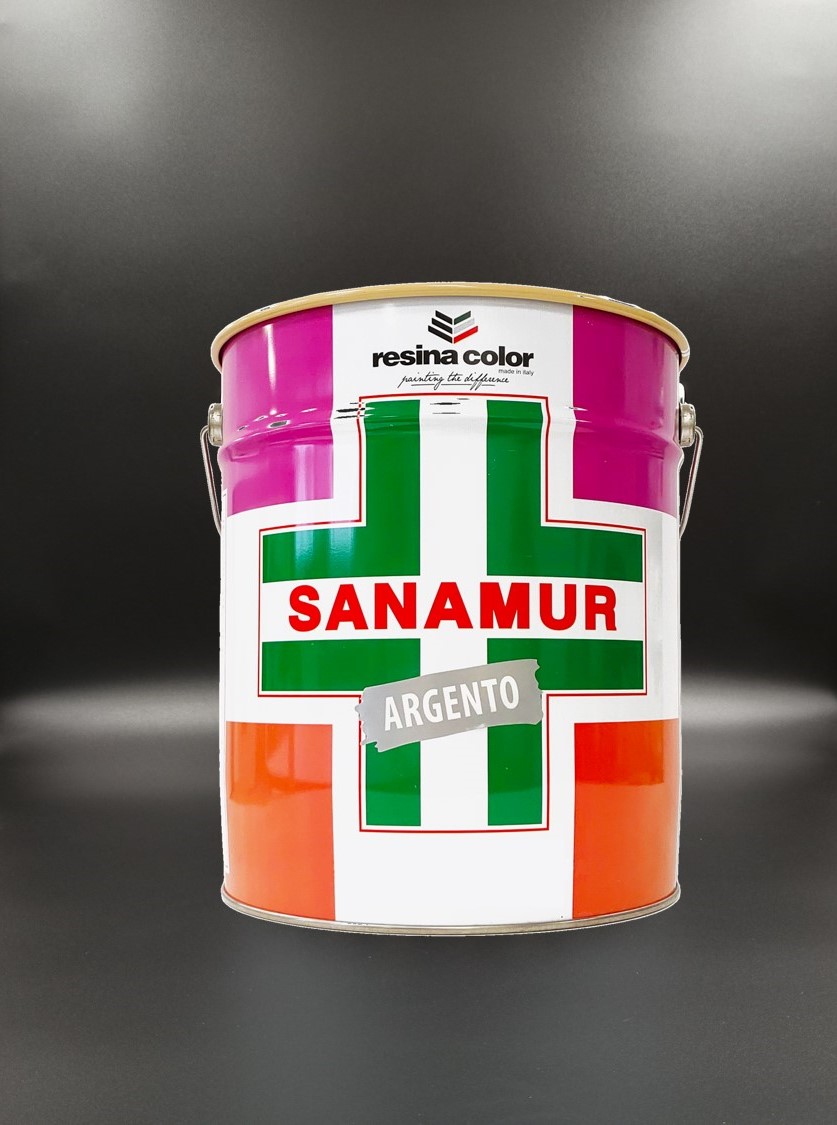 Sanamur Argento is a washable water-based paint based on acrylic resins and SILVER IONS with antibacterial and immunizing properties whose function is to prevent the formation of bacteria on walls and to preserve them from the formation of moulds and algae for a very long time. For this reason, anti-mould and anti-algae agents, which are absolutely harmless to human beings, are added to the paint.