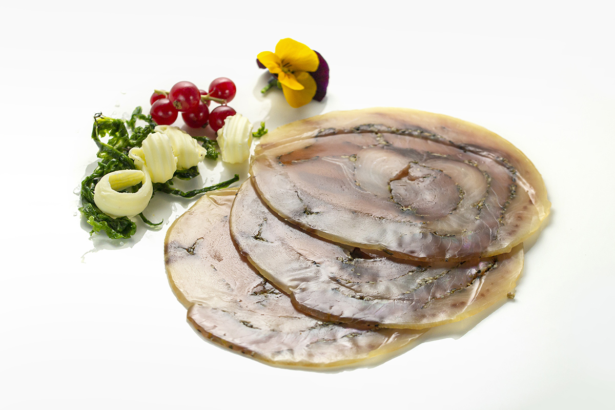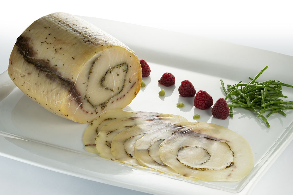 Spadetta: rolled smoked swordfish with aromatic herbs