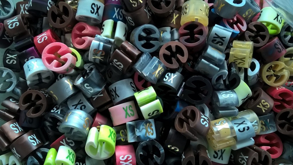 We can produce our standard article size markers in a two-colour version. By combining two colours (see the Plastic colour range page), each individual size marker produced is unique. They are all different because the mix is random, meaning that there may even be ones in a single solid colour.