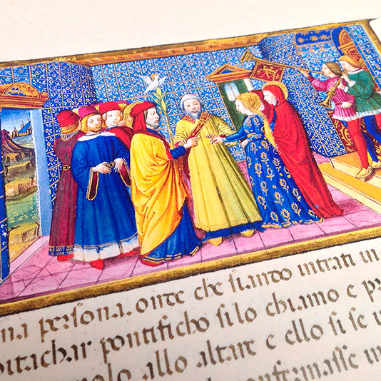 We are specialised in the reproduction of historical volumes and illuminated manuscripts, having gained important know-how in the sphere of high-quality printing over the years. Illuminated manuscripts are unique, handwritten manuscripts, embellished with splendid drawings created by expert Renaissance illustrators in gold, silver and other colours. Today, the original manuscripts are kept at important museums and world heritage libraries and are only available to the public in the form of facsimiles.