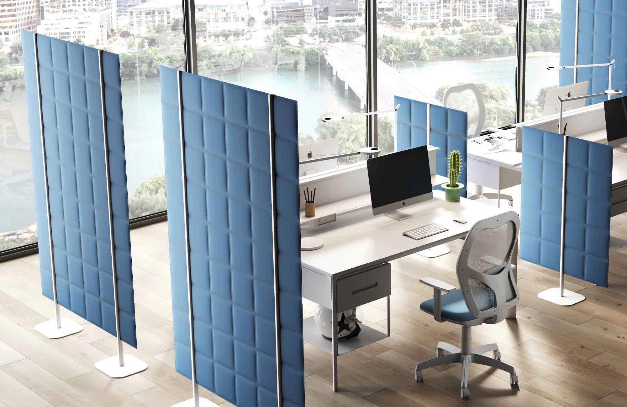 Tetrix is a colorful sound-absorbing fabric panel, available in different dimensions, that perfectly combines aesthetic and sound absorption. This element is Eco-friendly, it is made of recycled and recyclable content, it is moisture resistant and has a washable surface. The involvement of Tetrix contributes to Leed certifications. Its acoustic performance is in range of αw=0,65 up to αw=0,95 based on the installation method. Tetrix is also available in the Free-standing version, suiting any design need: its supporting bases can reach over 200 cm from the floor. The bases are available in different heights and in two neutral colors (white or bonderized gray) that make the vibrant colors of the panels stand out. Tetrix is also available in the Bicolor version, which gives an improved color harmony to the rooms in which it is installed. The balanced acoustic absorption power helps to reach a pleasant acoustic comfort and it makes it suitable to any situation where acoustic comfort is desired. Tetrix has just obtained the has just obtained the fire reaction certificate with a Bs2d0 classification. This abbreviation is a European classification corresponding to the Italian CLASSE 1 (non-flammable combustible materials). The Tetrix panel has been tested in different configurations: on the ceiling, on walls and free standing; the result is that it is perfectly suitable for any place in which the fire prevention certificate standards are applied. Thanks to the positive result of this last certification, Tetrix panels successfully passed all the tests regarding acoustic performance.