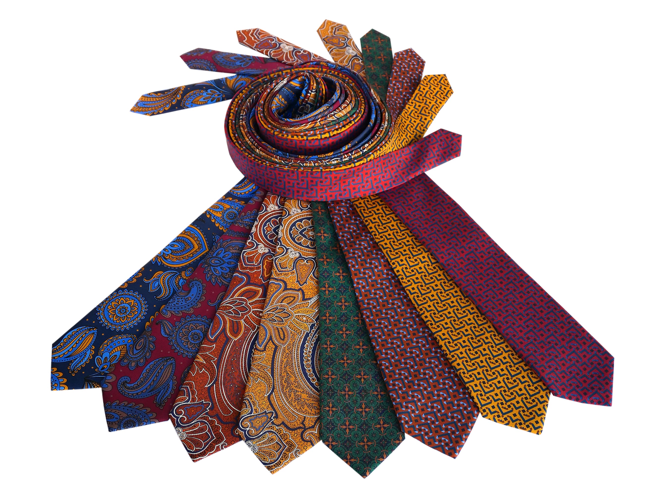 The Heritage Spectrum Collection is a curated selection of silk ties that celebrates the richness of textile tradition through color, pattern, and craftsmanship. Each tie is conceived as an individual expression, yet part of a coherent visual language that blends classic elegance with a contemporary sensibility.