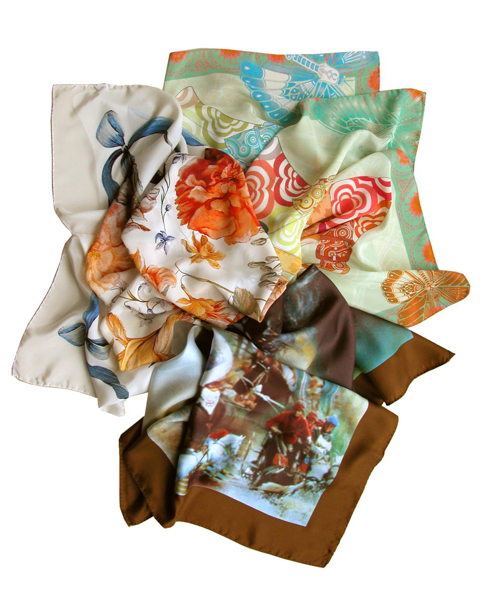 The Art & Nature Silk Foulard Collection is a refined expression of creativity inspired by the natural world and artistic imagery. Each foulard is designed as a visual composition where floral elements, graphic motifs, and illustrative scenes coexist in a harmonious and contemporary language.