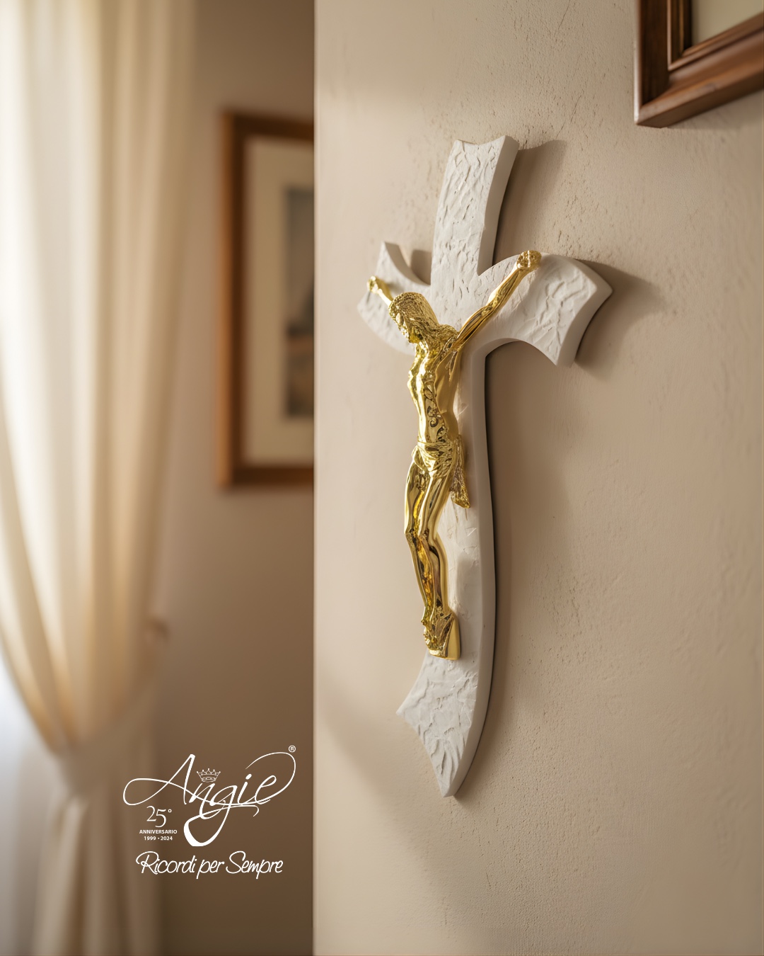 Gold Crucifix on a marble dust cross with a spatula-finished surface