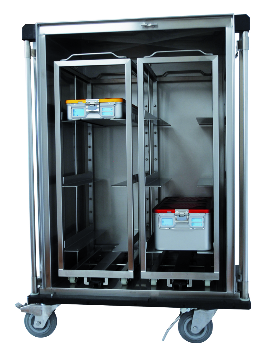 Stainless steel trolleys used for the transportation of sterile instruments inside the hospital