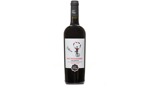 Vitigno: Negroamaro Igp Salento Biologico Zona di produzione: Masseria Mita Epoca di raccolta: prima settimana di settembre Affinamento: in serbatoi di acciaio Colore: rosso intenso con riflessi viola Profumo: intenso di frutta secca, ricorda il lampone e la fragola Sapore: pieno, equilibrato con finale piacevolmente persistente Tenore alcolico: 13,5 % vol. – Servire alla temperatura di 18° C Abbinamento: suggerito su primi piatti, arrosti di carne, cacciagione e salumi