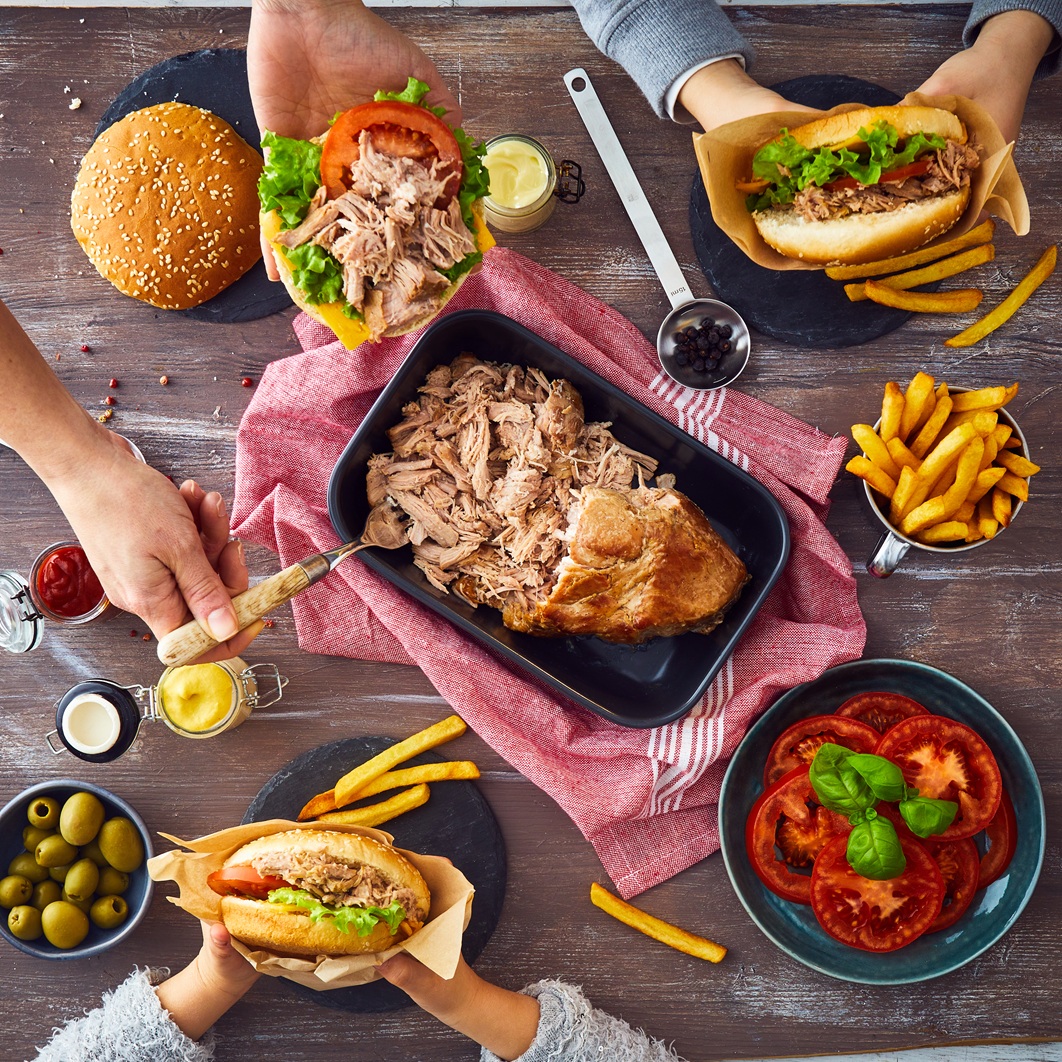 Pork neck, smoked with natural beechwood and slowly cooked at low temperature. Ready to be pulled. Also available in shoulder cut.