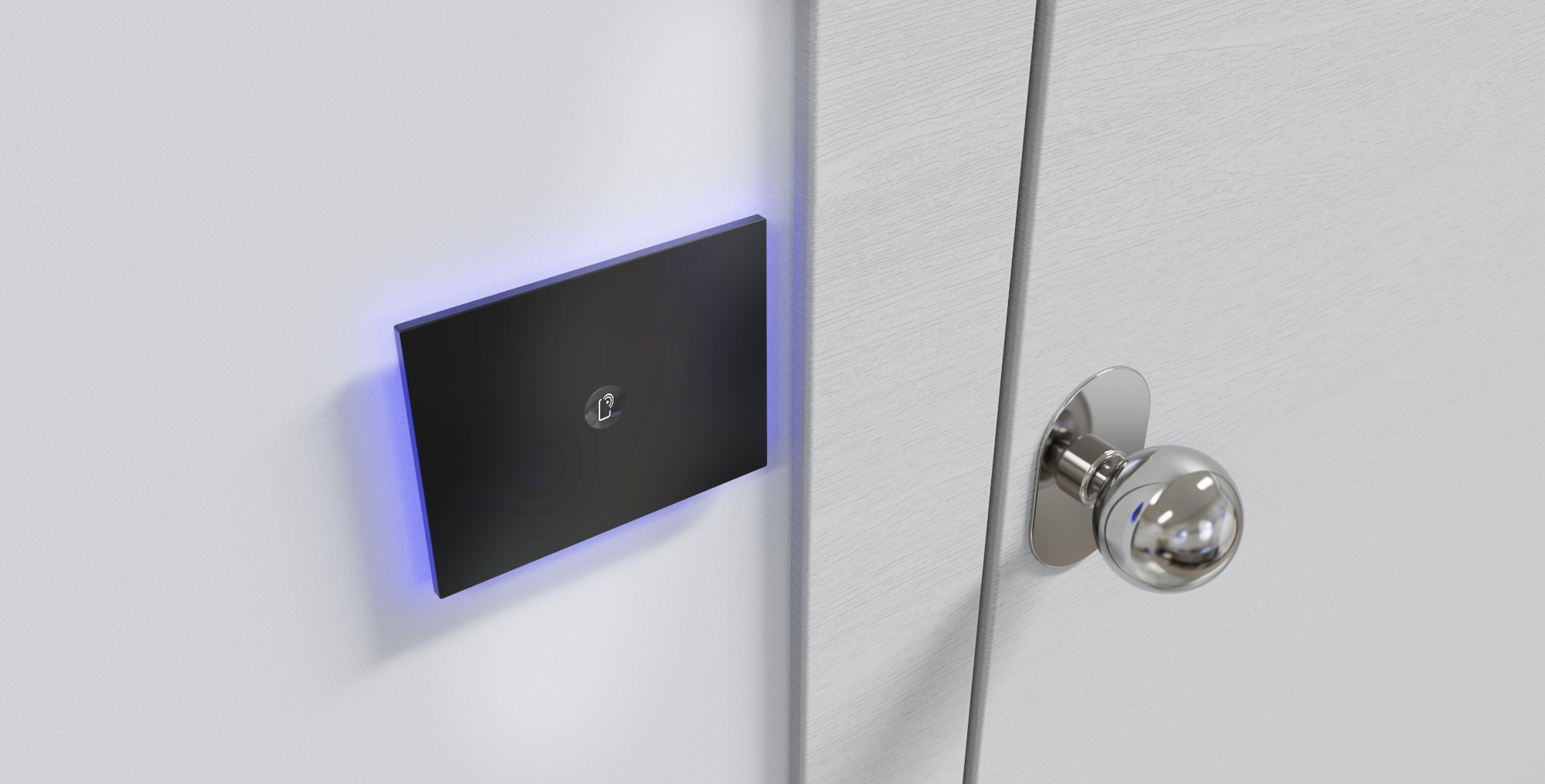 It is equipped with RGB backlighting that can be customized via software, used to replicate the status of the room in the corridor (occupied, do not disturb, to be rearranged or to be sanitized , personal call, alarm in progress, etc…).