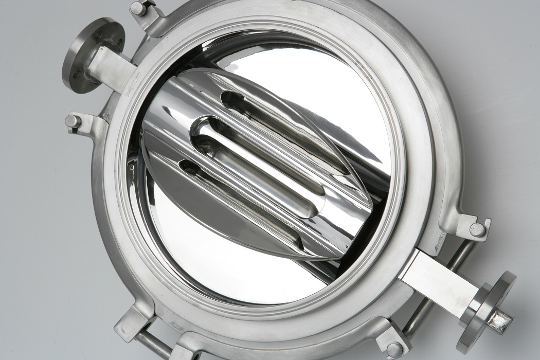 Our sanitary butterfly valve STERIVALVE is designed to intercept bulk solid product flow within the process. The compact design, free of recesses and interstices allows easy cleaning and handling. The torque value is very low so an operator can easily open it by using a lever.