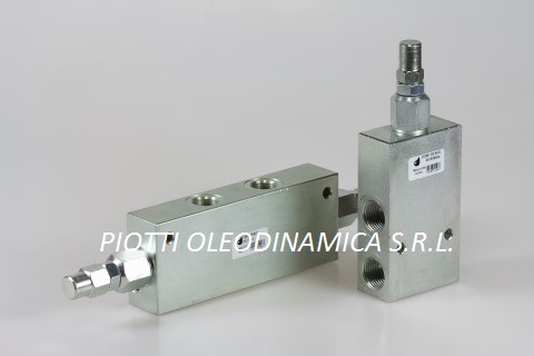 To control and lock the movement of an actuator in only one (SINGLE type ) or both directions (DOUBLE type). It guarantees the stopping of the flow, the controlled descent of the load preventing cavitagion, protects the corcuit from pressure increases and allows free passage in the opposite direction. Also available flanged type.