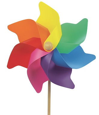 One of our best seller: multicolor wings like a ranibow, stick and the ball in the centre are made of natural beech wood. The wings are made in PP which is an eco-friendly material, it can be easily reused infact we have no production waste of this material, as all the offcuts generated during the cutting of the wings are shredded and reused in the production of the components needed for assembling the pinwheel itself. This pinwheel can be placed in gardens, balconies, and shop windows, and its colors bring joy and smiles. Moreover, its movement naturally keeps birds and insects away, and when planted in the ground, the vibrations produced by its rotation naturally deter moles and other underground animals.