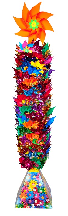 Art 530/125 Display ready for sale with 136 assorted windmills diameter cm 21. One of our best seller: in just 39x39 cm of space and a wide assortment of windmills in different colors and decoration and it arrives to the customer ready for sale with all the assorted windmills on. We can produce it with private label and customized on customer's need. This is a perfect display for supermarket and hypermarket