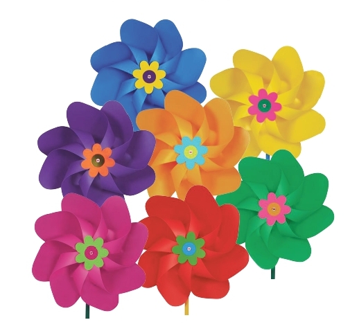 The simplest pinwheel, the one children draw and make. A timeless classic with the modern touch and cheerfulness of assorted designs, and a diameter that also makes this item suitable for use as a decoration. A wide variety of colors and assorted decoration. The wings are made in PP which is an eco-friendly material, it can be easily reused infact we have no production waste of this material, as all the offcuts generated during the cutting of the wings are shredded and reused in the production of the components needed for assembling the pinwheel itself. This pinwheel can be placed in gardens, balconies, and shop windows, and its colors bring joy and smiles. Moreover, its movement naturally keeps birds and insects away, and when planted in the ground, the vibrations produced by its rotation naturally deter moles and other underground animals.