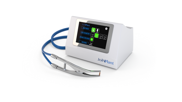 It is a CE marked medical device used to join and stabilize immediate loading implants with a rigid splint in order to break down the masticatory forces applied on implants during healing and osseointegration. By means of a welding clamp endowed with copper electrodes, a pre-fabricated titanium bar is welded to the implant abutments directly in the oral cavity: an intense electric discharge passes through the contact point between the two titanium elements for a very short time (few milliseconds) without heating the surrounding tissues. The current flowing between the titanium elements warms up the point of fusion, achieving a solid welded junction. Such rigid fixation reduces the mechanical stress exerted on each implant during mastication and prevents the risk of micromovements, thus favouring the stability of the implants during the early stages of bone integration. There is no risk for the patient since during the welding process the pliers are automatically disconnected from the mains and the heat produced is dissipated through the copper electrodes thanks to the greater thermal conductivity of copper compared to titanium.