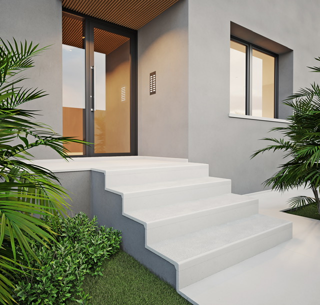 It is a picture showing one of the use of our Wall Coping Evolution, our squared Wall Coping. It can be used apart from covering boundary walls, also for poolsides, window frame and so on.
