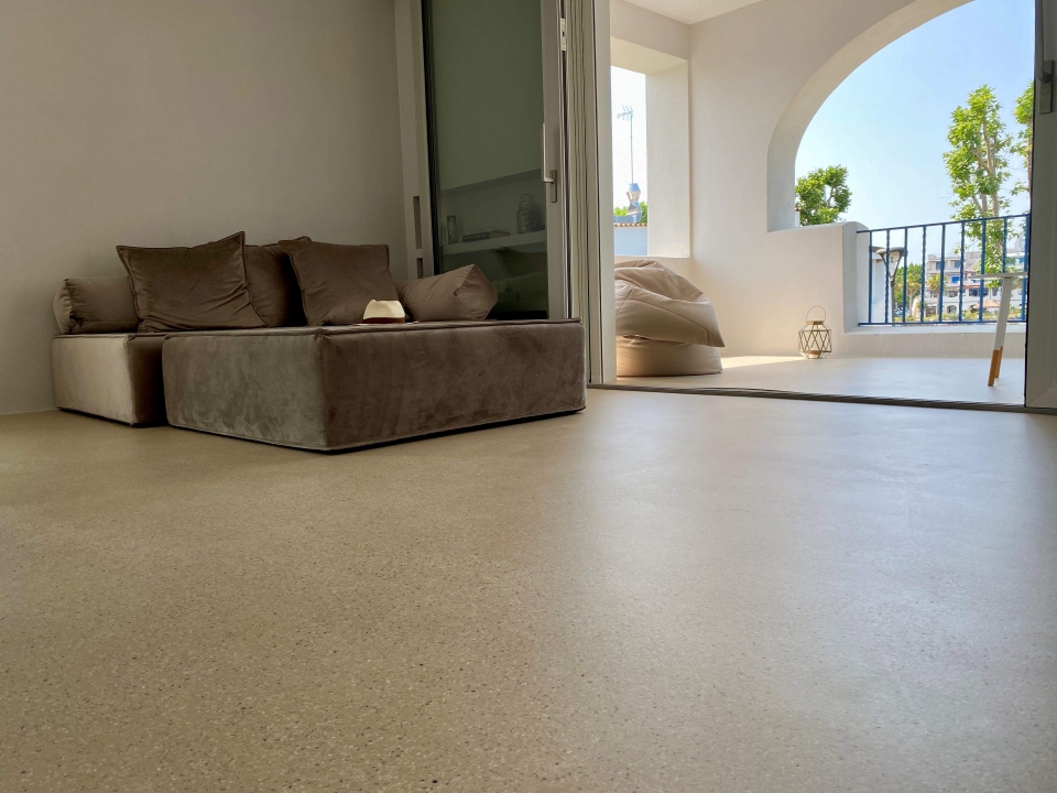 La sua struttura consente di ottenere pavimenti senza fughe, omogenei e altamente personalizzabili, con finiture che mantengono un aspetto naturale e contemporaneo. La continuità superficiale non è solo una scelta estetica: riduce i punti critici di accumulo dello sporco e migliora l’igienicità complessiva degli ambienti.