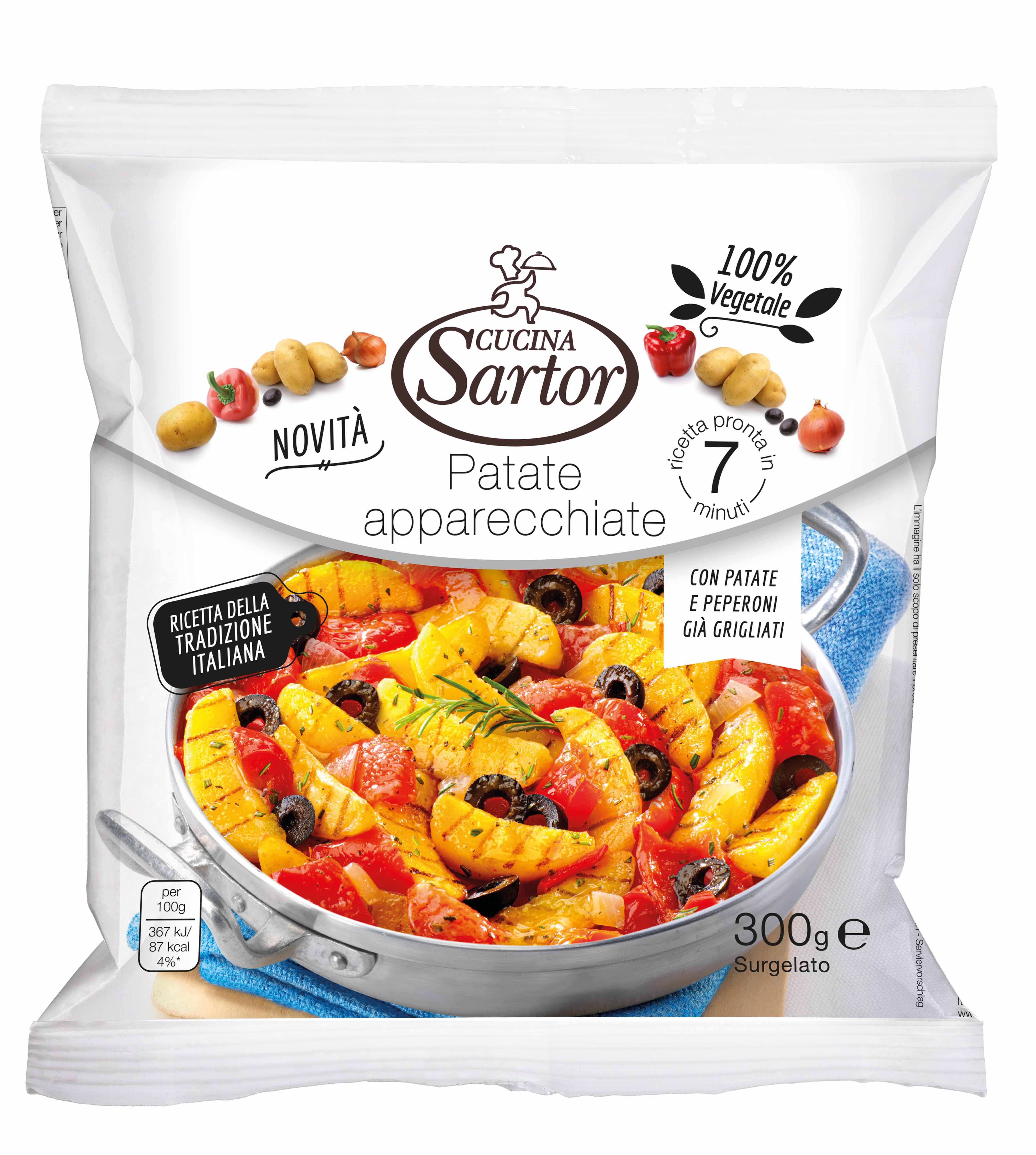 Preparation - skillet: heat 4 tablespoons of Extra Virgin olive oil, pour the frozen product and cook for 6 minutes on medium-high heat, stirring often