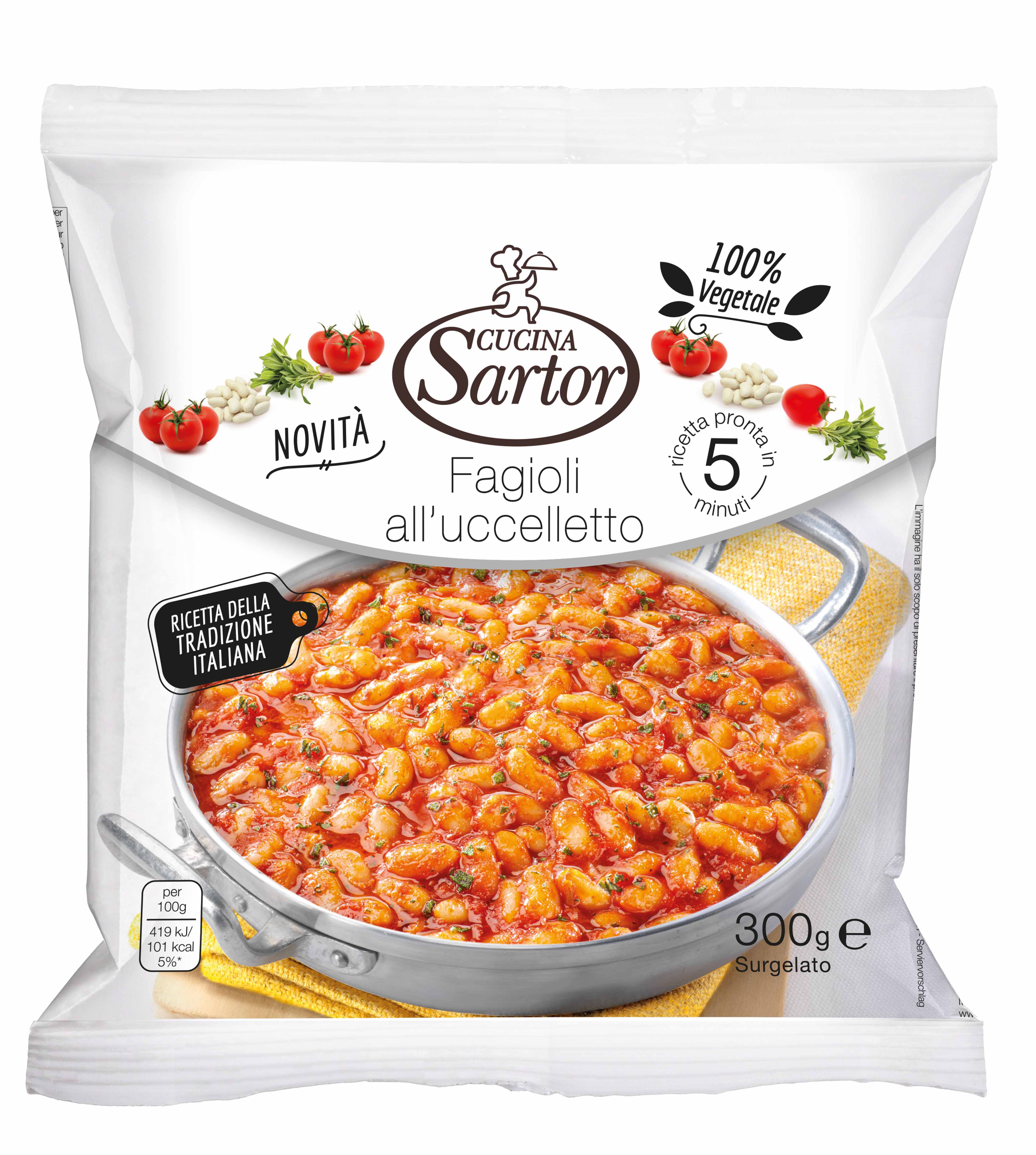 Preparation - microwave: pour the frozen product in microwave container and reheat for 5 minutes at 750 watts (when reating at a lower power, consider 1 extra minute for every 100 watt below the suggested power).