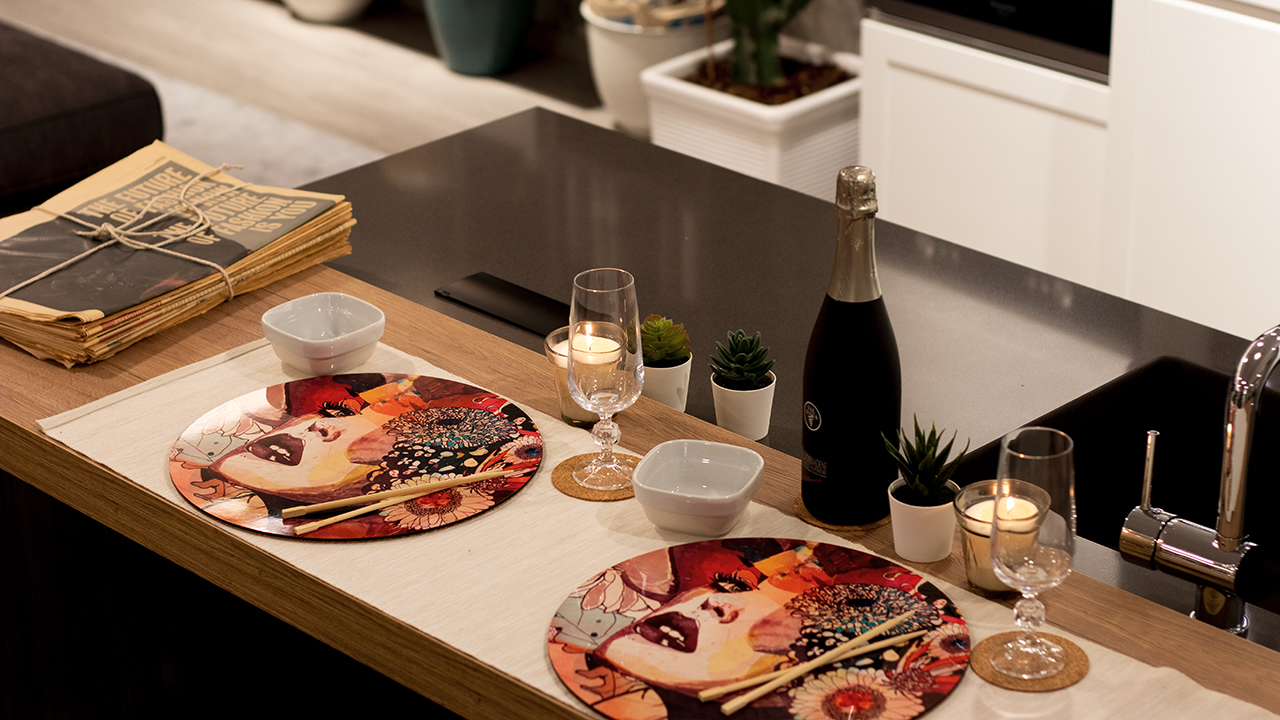 Fully Made in Italy processed placemats, Italian designs, made with the highest quality material, antibacterial, easy to clean, bright colors. Possibility of personalizing with the customer's files, the mats are combined with a 2 mm thick cork to give value and style to the product.