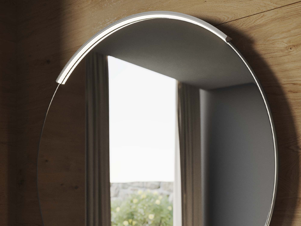 The A215K - Ril mirror lamp, with a choice of LEDs and opal screen, offers customizable custom lighting. With a size range of 500 to 1400 mm and UL Listed, CE, CL3, IP20-44 and Raee certified, it is ideal for indoor environments that require high-quality, customized lighting.