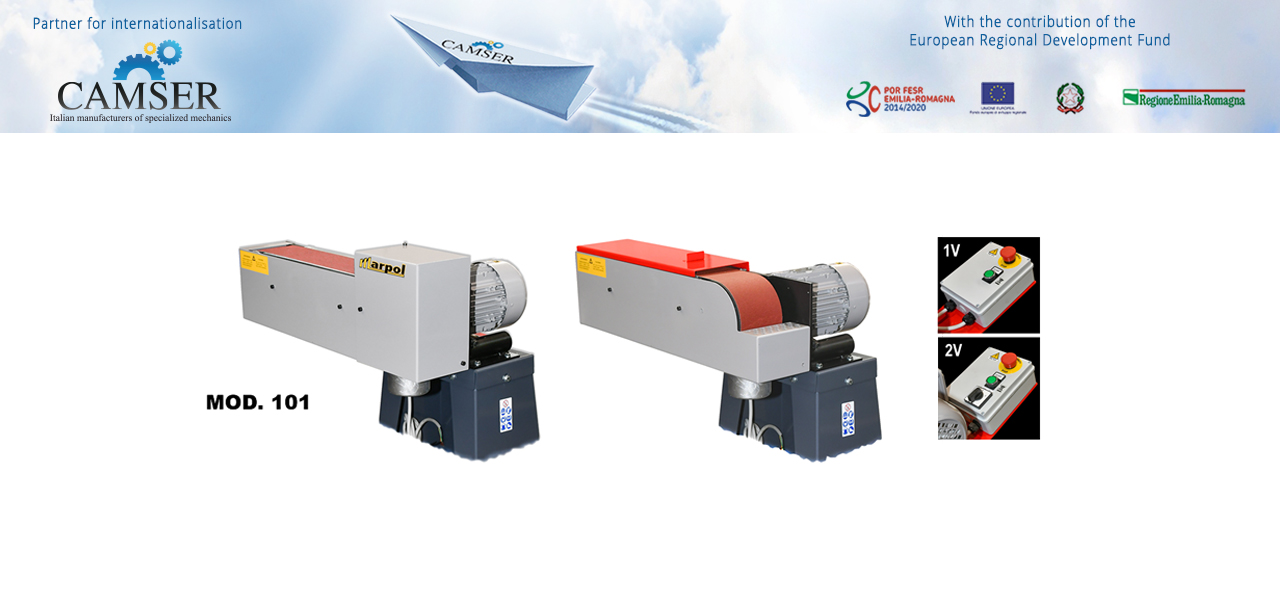 Motor: 0.8 Hp to 1 Hp with sand belts 100 x 1000 (mod. 100 bench type) and 120 x 1500 for model 101.