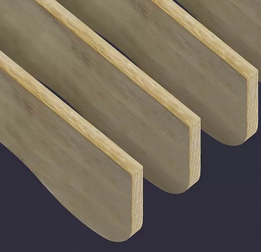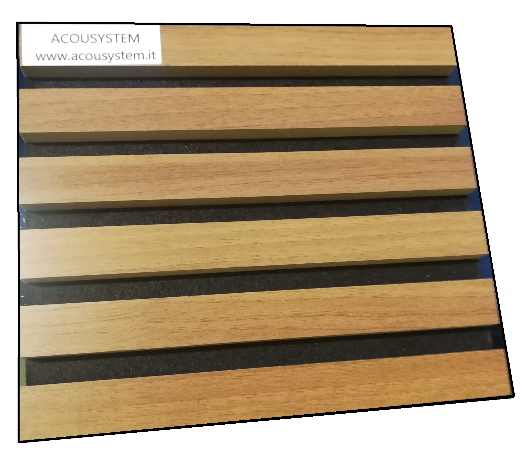 Sound-absorbing modular element made up of laminated MDF wood slats glued onto high-density polyester fiber felt. Suitable for wall claddings and false ceilings