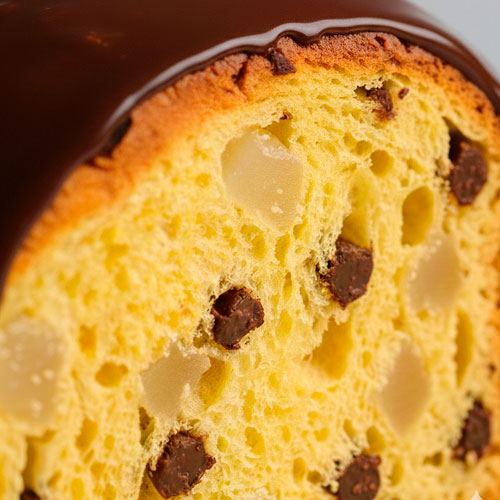 The enveloping sweetness of artisan-candied pear joins the intensity of dark Belgian chocolate in a slow-fermented dough. Luxardo Rum completes the aromatic profile with warm and spicy accents, while a thin chocolate shell seals in the fragrance and softness of the leavened creation.