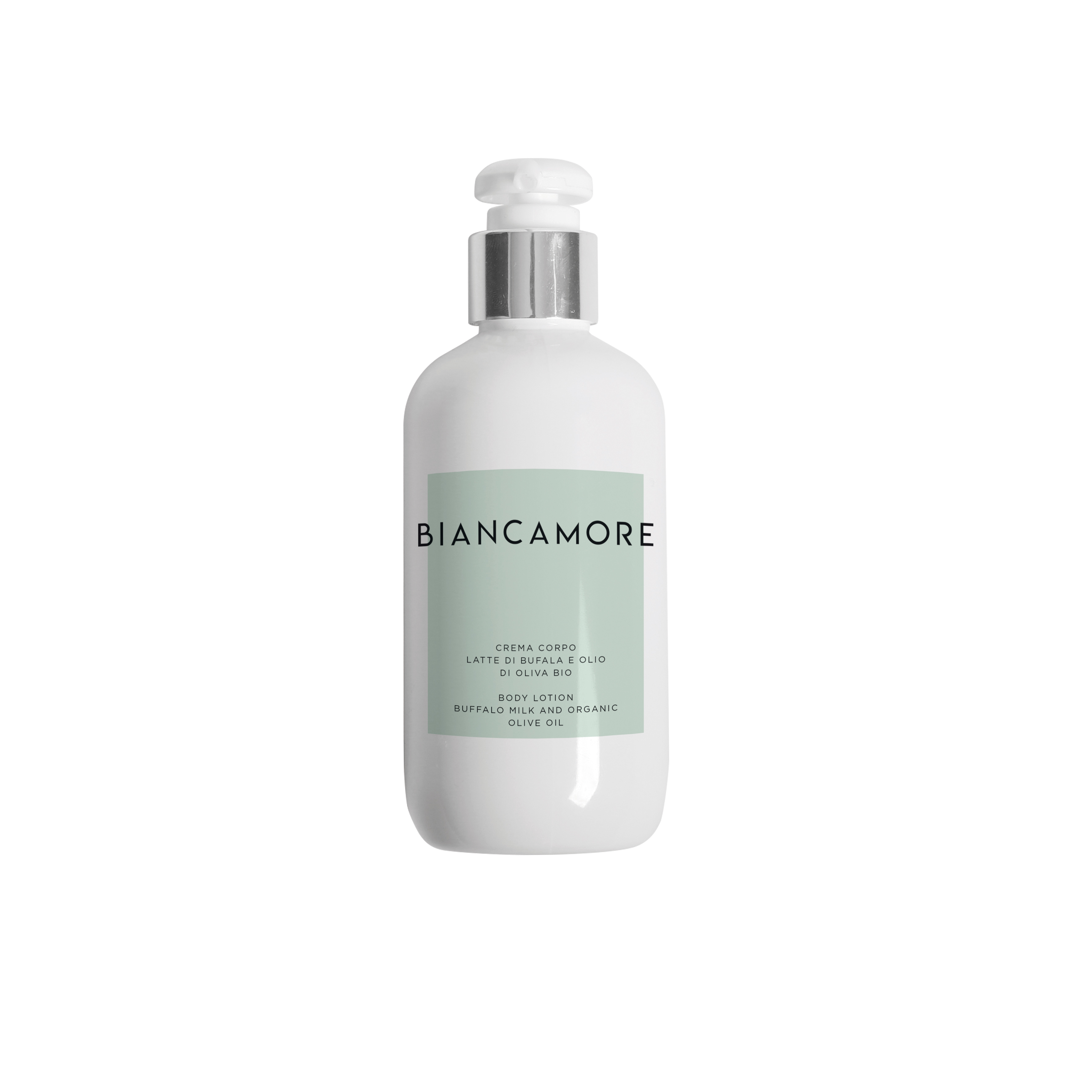 Biancamore Buffalo Milk & Organic Olive Oil Body Cream combines the nourishing properties of buffalo milk with the protective and antioxidant benefits of certified organic olive oil.