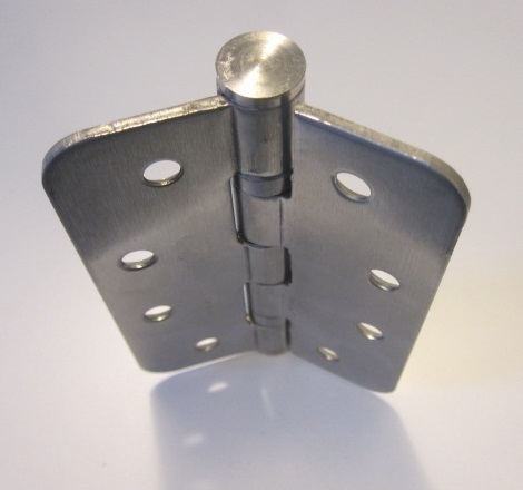 Double wing metal hinge of 2 mm thickness, made of stainless steel (class 304), weight 150 g. It can support loads up to a maximum of 30 kg (can be used in pairs, reference to two-leaf doors).