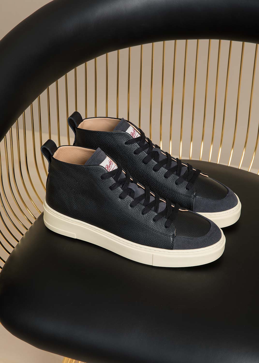 Icon Black Leather è un Sneaker alta stringata Made in Italy, realizzata in pelle di vitello e foderata in vitello naturale.