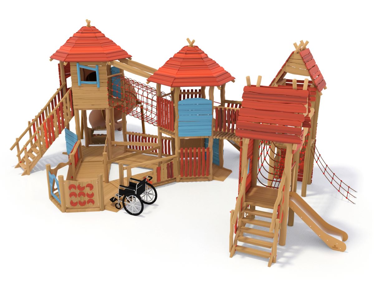 Wooden scenographic playground equipment.