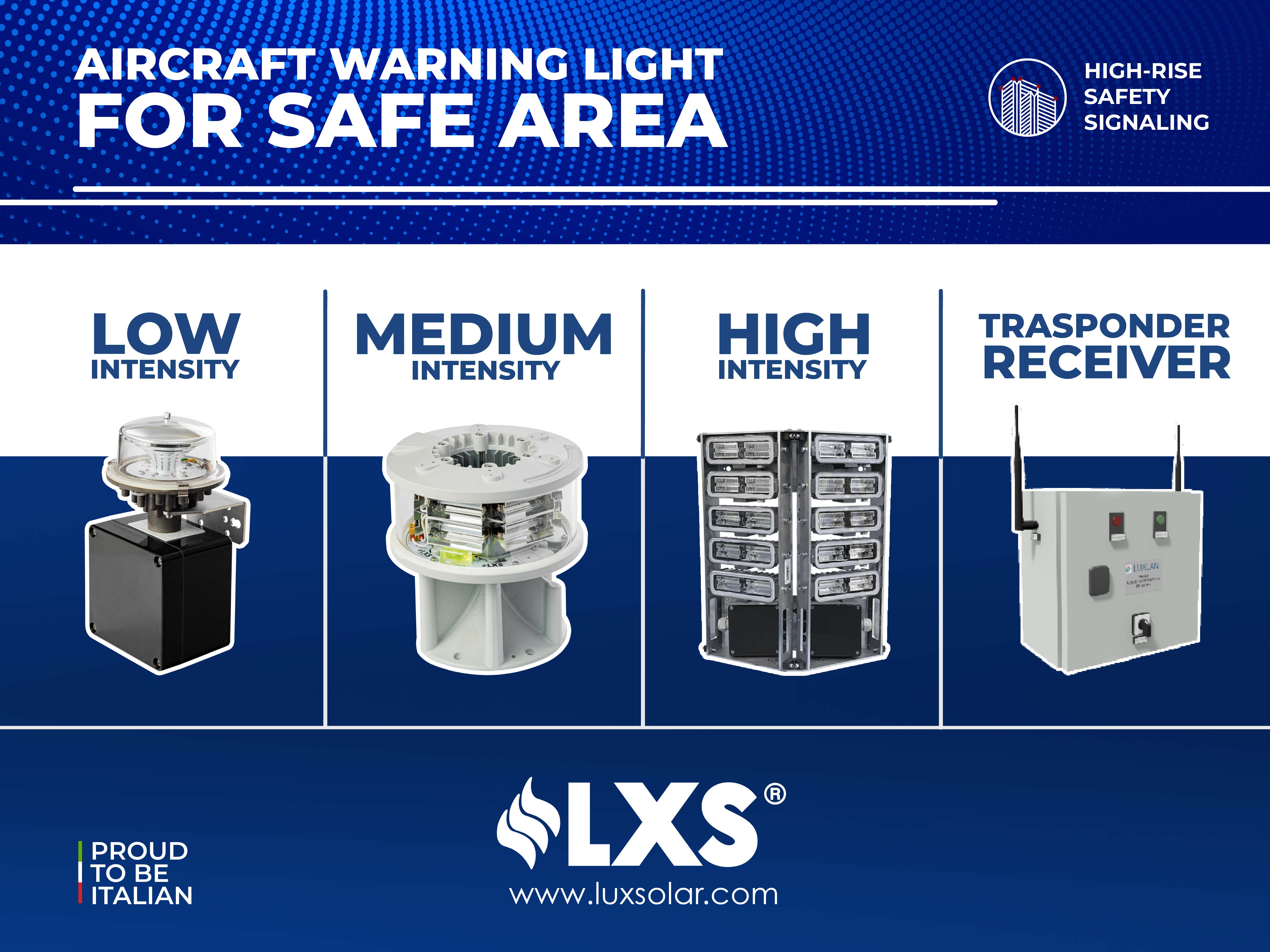 LUXSOLAR® designs and manufactures Aircraft Warning Lighting systems for safe-area installations, supporting obstacle marking on buildings, towers, cranes, chimneys and high-rise infrastructures.