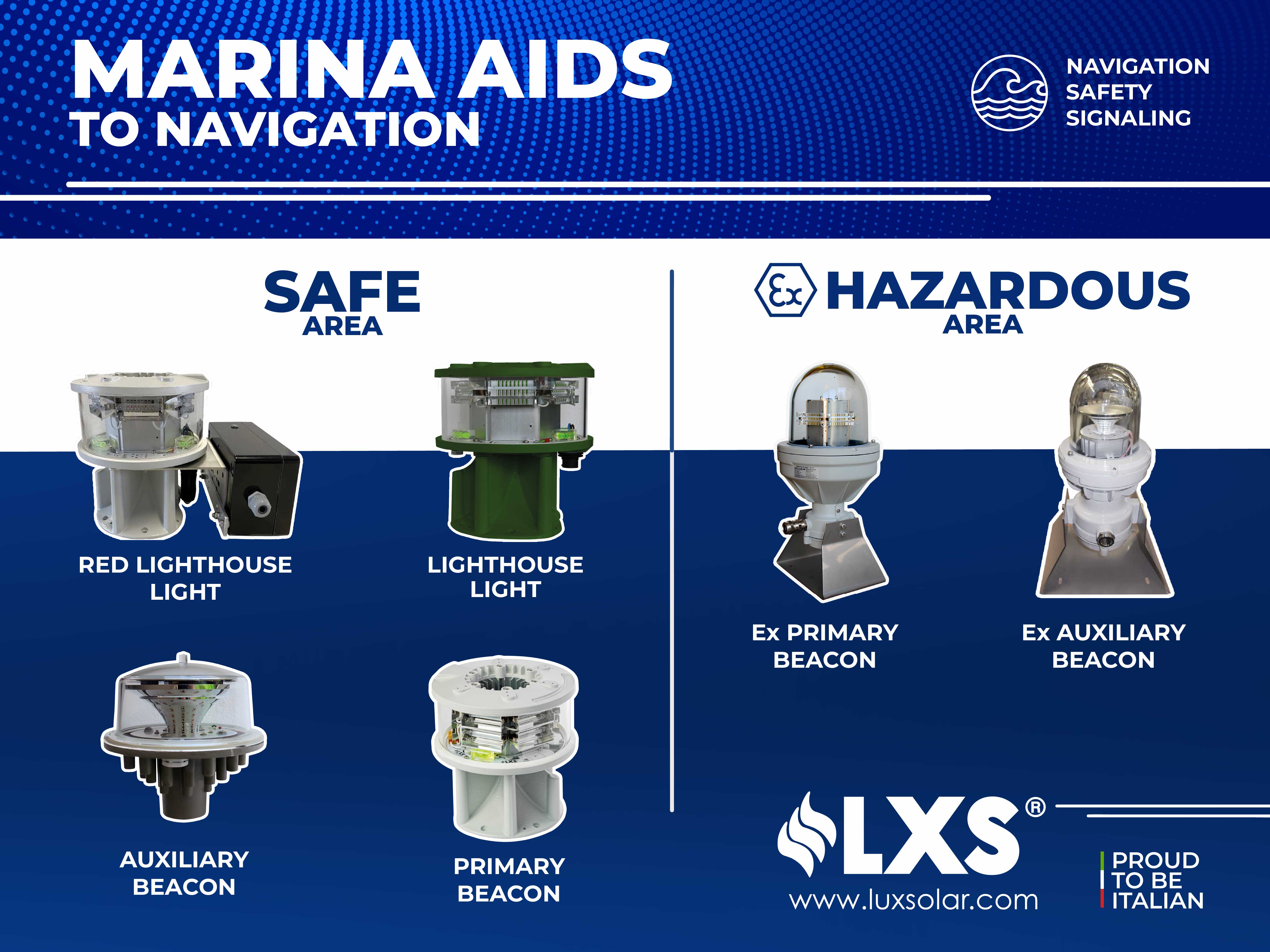 LUXSOLAR® designs and manufactures marine aids to navigation for safe and hazardous (explosion-proof) environments, supporting maritime safety in coastal, port and offshore applications.