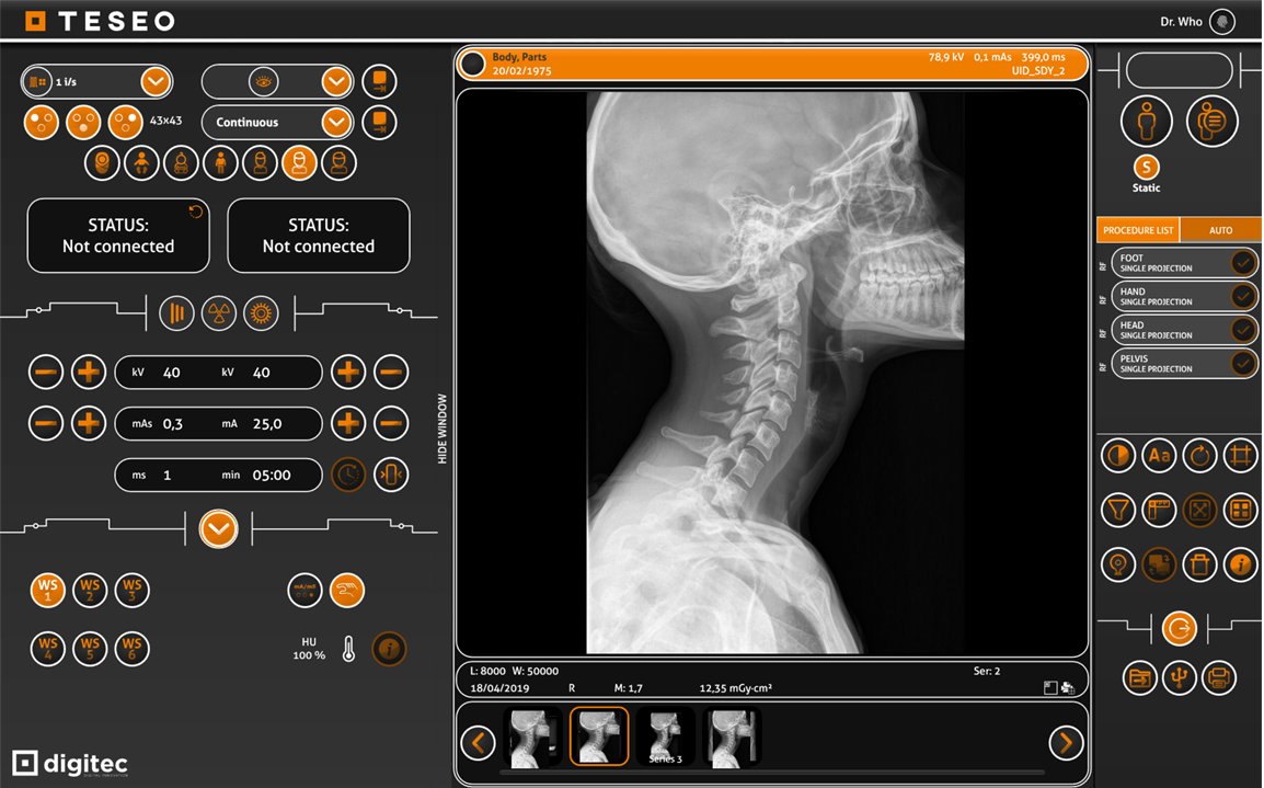 TESEO is our DR software which acquires, manages and processes radiological images acquired with a static detector.