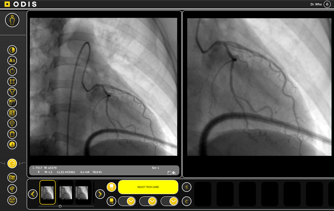 ODIS is the software which acquires, manages and processes radiological images in fluoroscopy mode acquired with a dynamic detector for C-Arm.