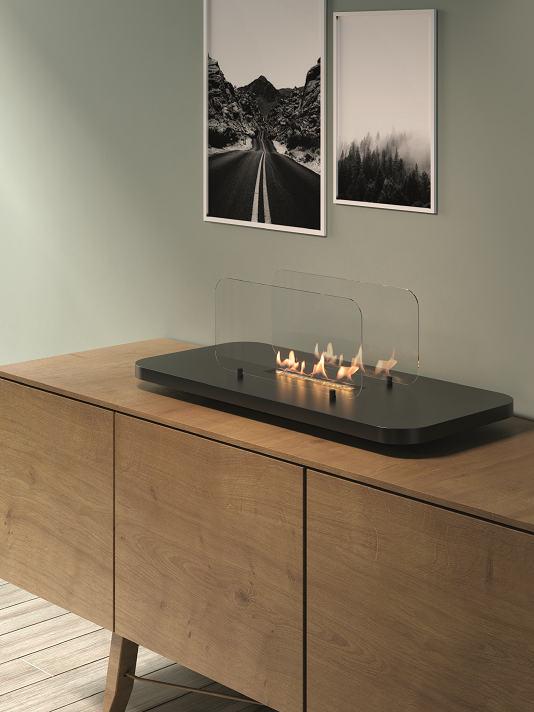 Table bio-fireplace, does not require a flue and electrical connection, runs on bioethanol.