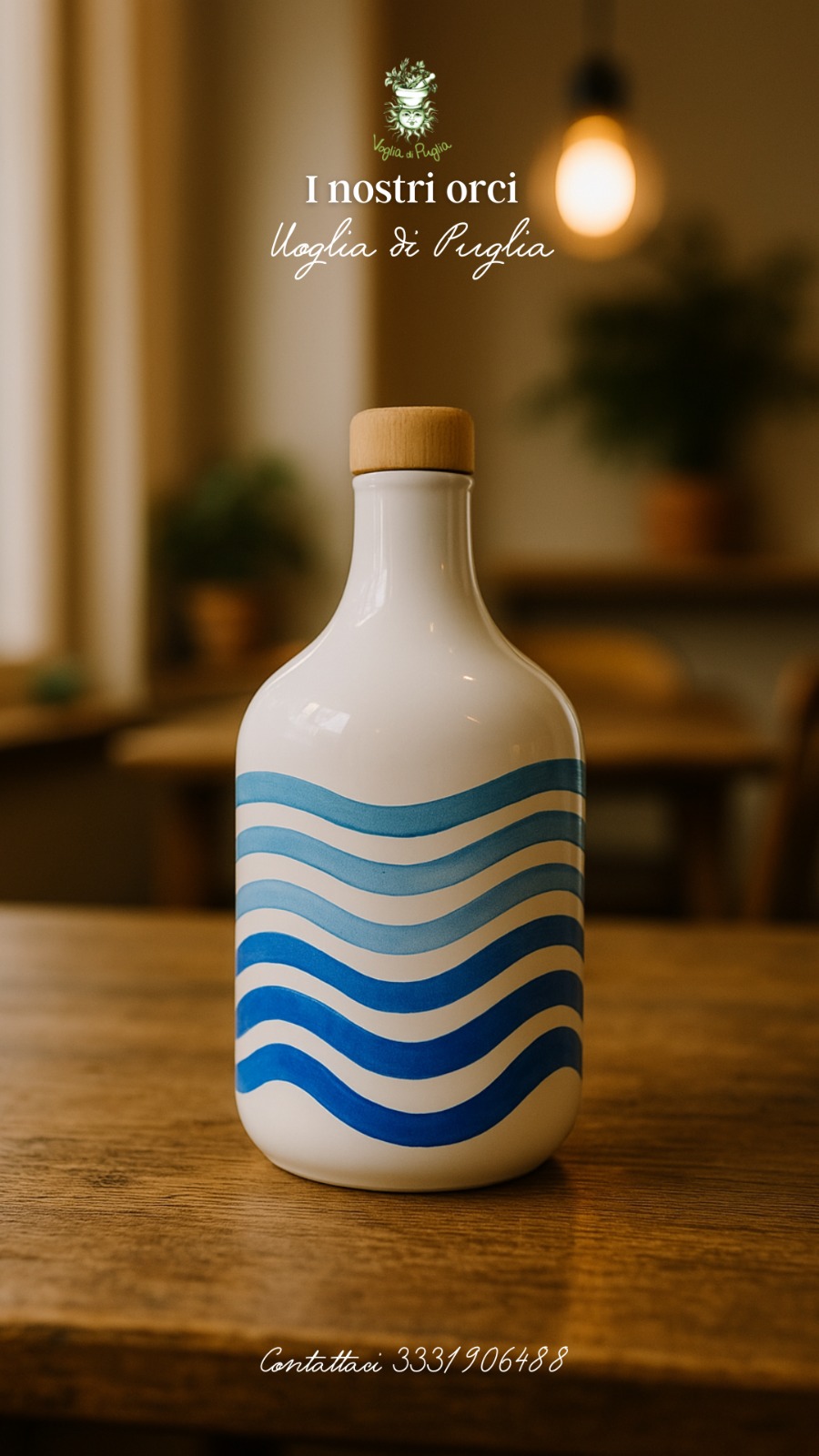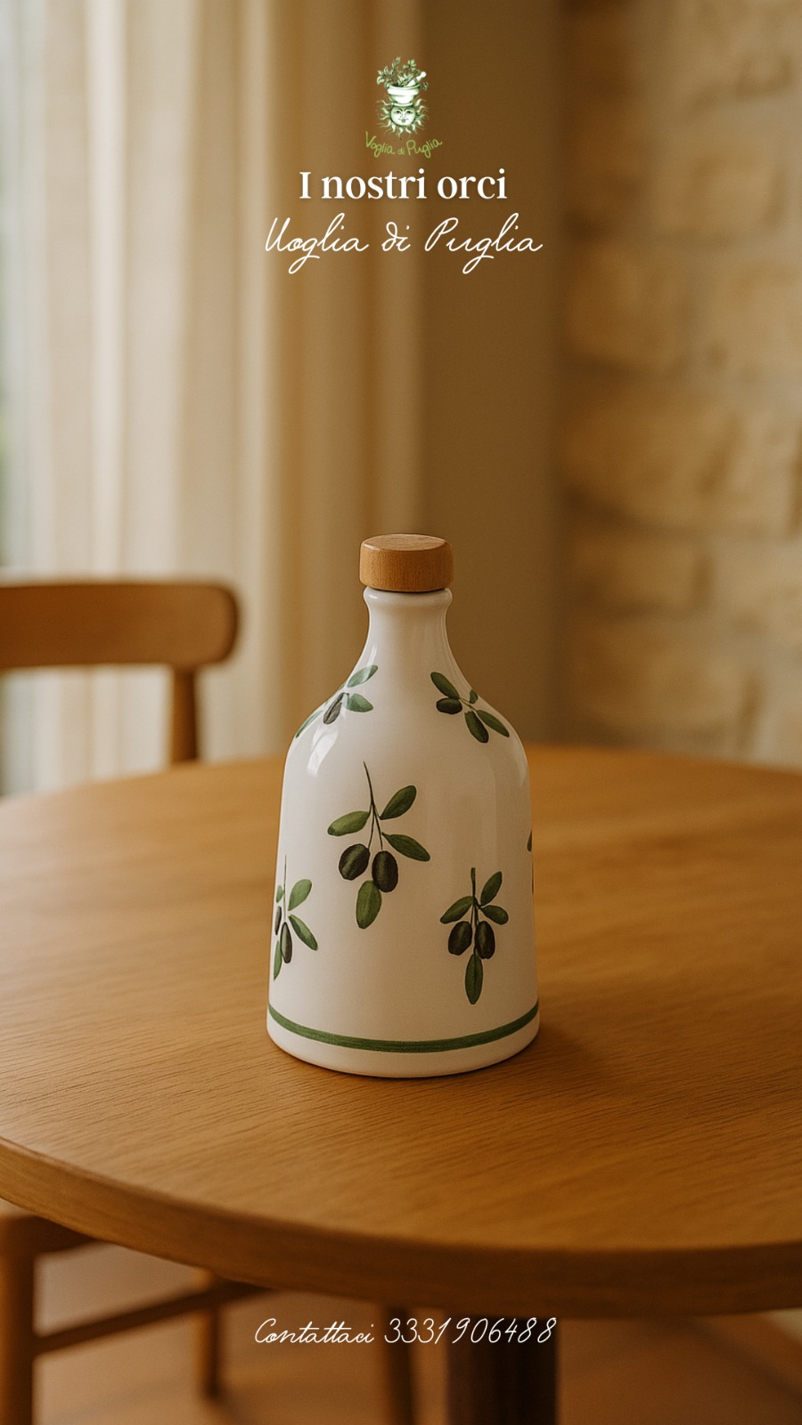 la ceramica pugliese patrimonio italiano, perfetto come oggetto da decoro, è eccellente anche per la lunga conservazione del nostro olio extravergine.