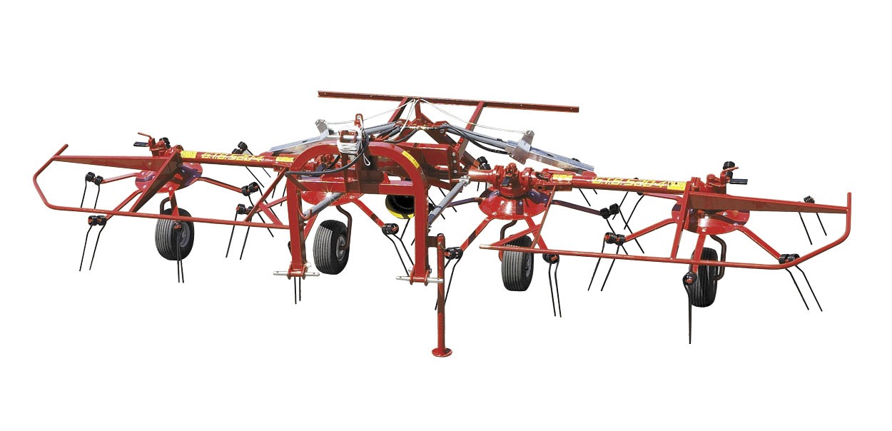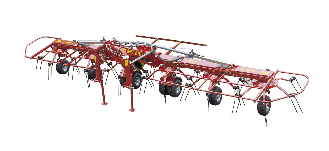 The ideal machine for spreading and tedding any type of fodder. Fast and careful tedding for the best possible forage quality. Many models, suitable to meet your requirements, start from 2,50 m. (8’ - 2 rotors) up to 6,20 m. (20’ - 4 rotors) working width, you can select the 3 point mounted or drawbar pulled types, hydraulic or manual raising on the 4 rotors.