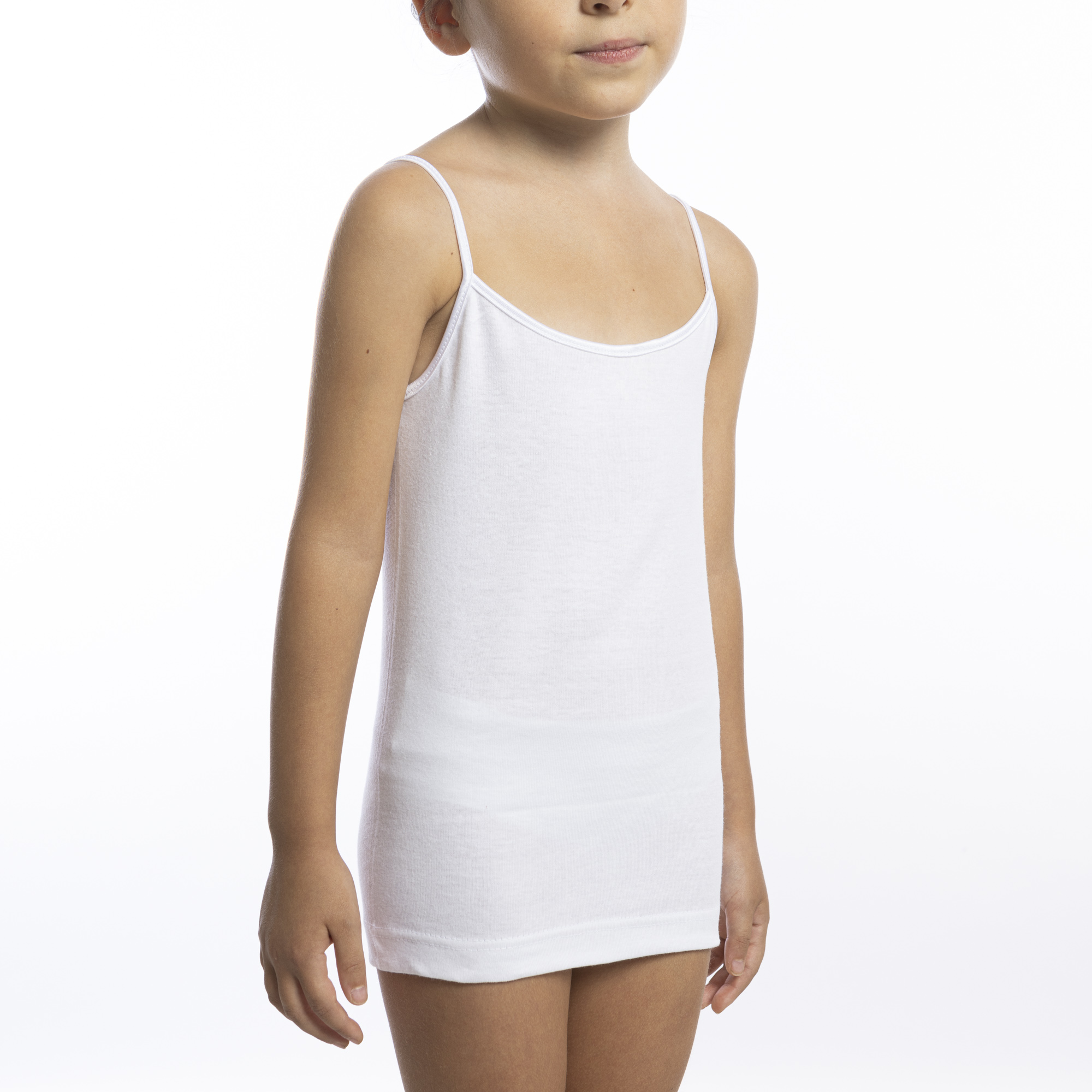 Made in Italy - Narrow shoulders girl's undershirt tank top with satin details 100% Ribbed cotton - Premium Quality