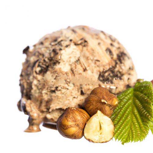 The Piedmont hazelnut, coarser ground, to bring all its intact taste to your home. The ice cream is creamy, but has a coarser texture. Simply lustful!
