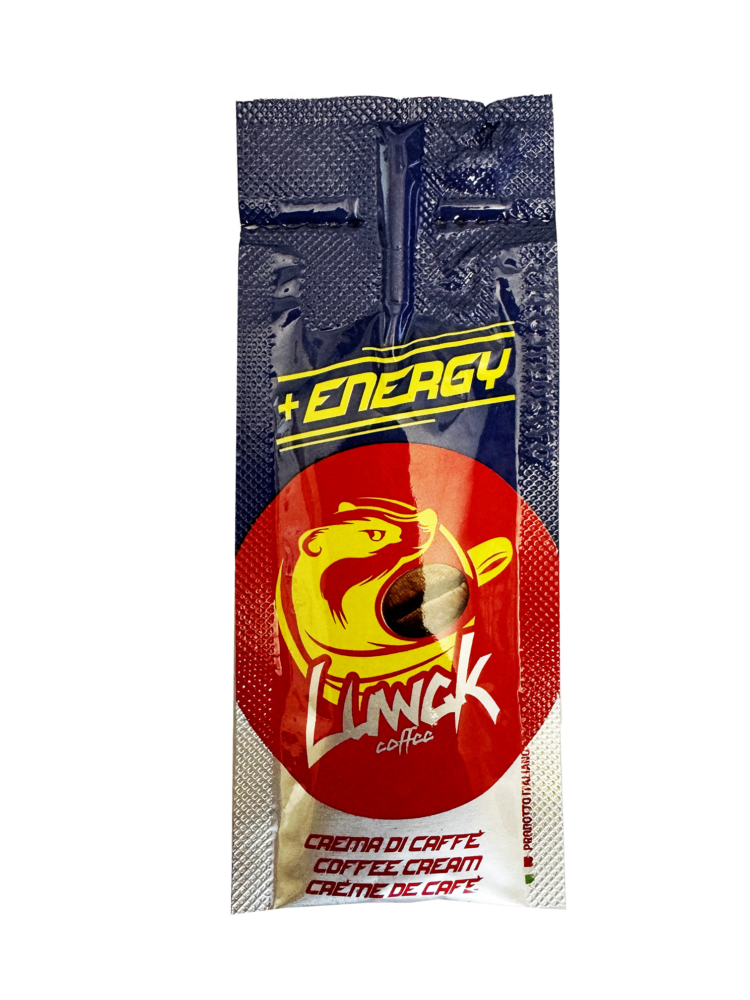 The Luwak +Energy sachet represents a breakthrough in the way coffee and energy are enjoyed. It is a 12-gram single-serve coffee cream contained in a patented sachet with an integrated straw (Mopack Straw-in-Sachet System), designed for immediate and hygienic consumption — anytime, anywhere, without the need for preparation, cups, or machines.