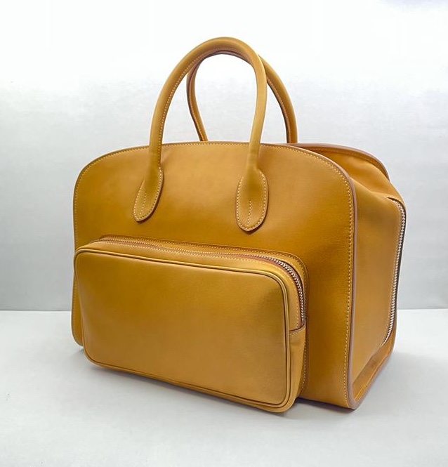 100% french calf and brass metals; many detail of stitching made by hand