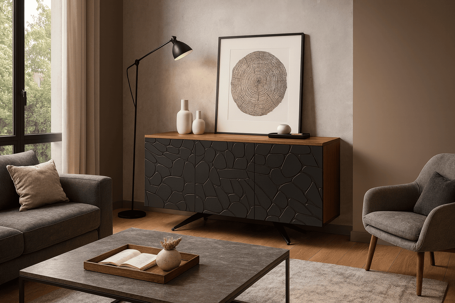 A modern, spacious, and design-driven piece, perfect for enhancing the living area with order and elegance.