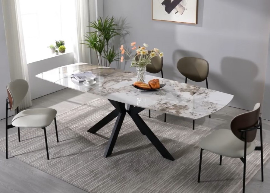 Dynamic elegance and functionality come together in Lewis, the extendable dining table with a modern design that fits perfectly into any space. Its refined ceramic top measuring 160 × 90 cm, extendable up to 240 cm thanks to an innovative rotating extension system, makes it the ideal choice for those who seek versatility without compromising on style. The solid metal base ensures stability and a strong visual presence, while the smooth and intuitive extension mechanism allows Lewis to transform in just a few moments, offering extra space and conviviality while maintaining a refined and elegant look.
