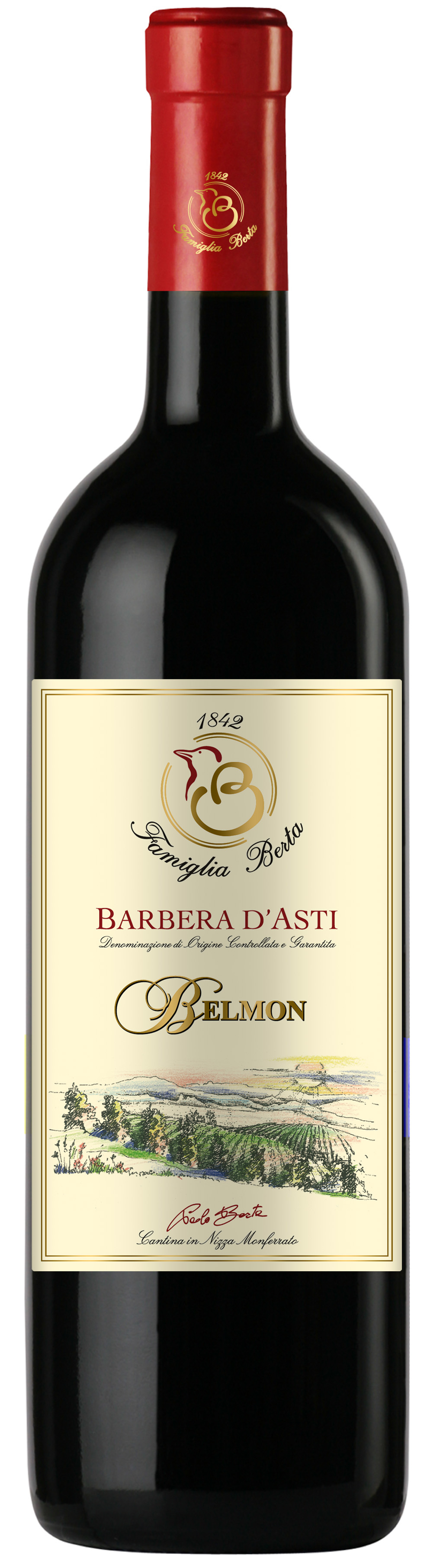 Barbera D'Asti "Belmon" was born like blend of 3 vineyards at 260 mt slm aspect sud/west, vineyards “Cerruta”, “Canfulet”,”Glauda. Average vine age:30 years; altitude: 260 meters; yield per hectare: 9000 kg of grapes. Choice of grapes harvested, maceration of 15/20 days, all the while following the traditional method of the Berta family.Deep ruby color, lingering fragrance and fruity with notes of violet and ripe fruit flavor, nicely balanced, full-bodied and round. To be consumed at 16 ° - 18 ° C.