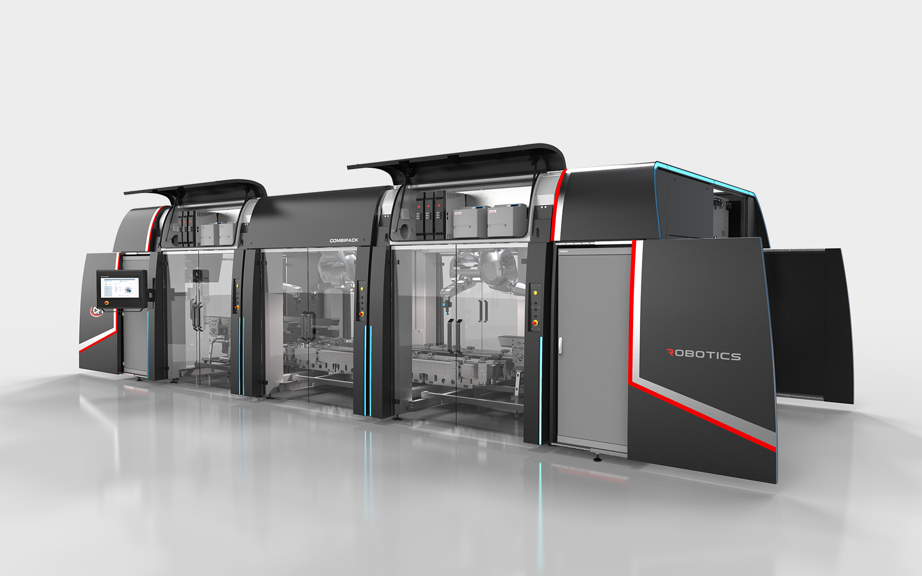 An automated machine for all-in-one secondary packaging with multiple functions, including erecting, filling, closing and palletising of boxes. An innovative design linked to the world of bodywork for industrial automation, for technology that protects and enhances