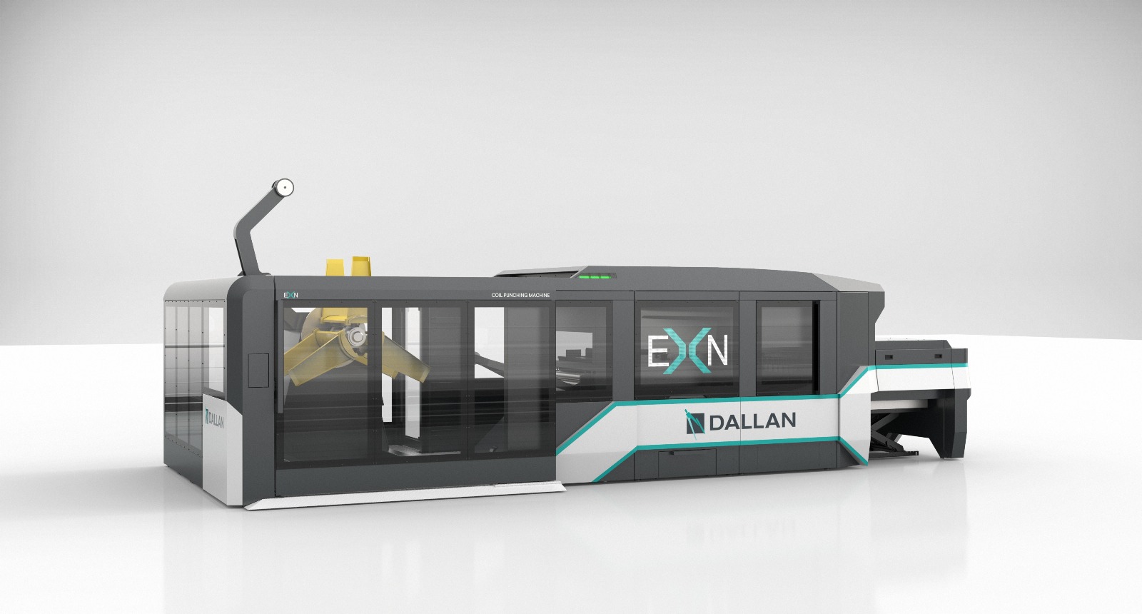 The line consists of a decoiler, a sheet metal feeding system, an servo-electric punching machine, a light or heavy shear extraction system and finished product unloading roller conveyors.