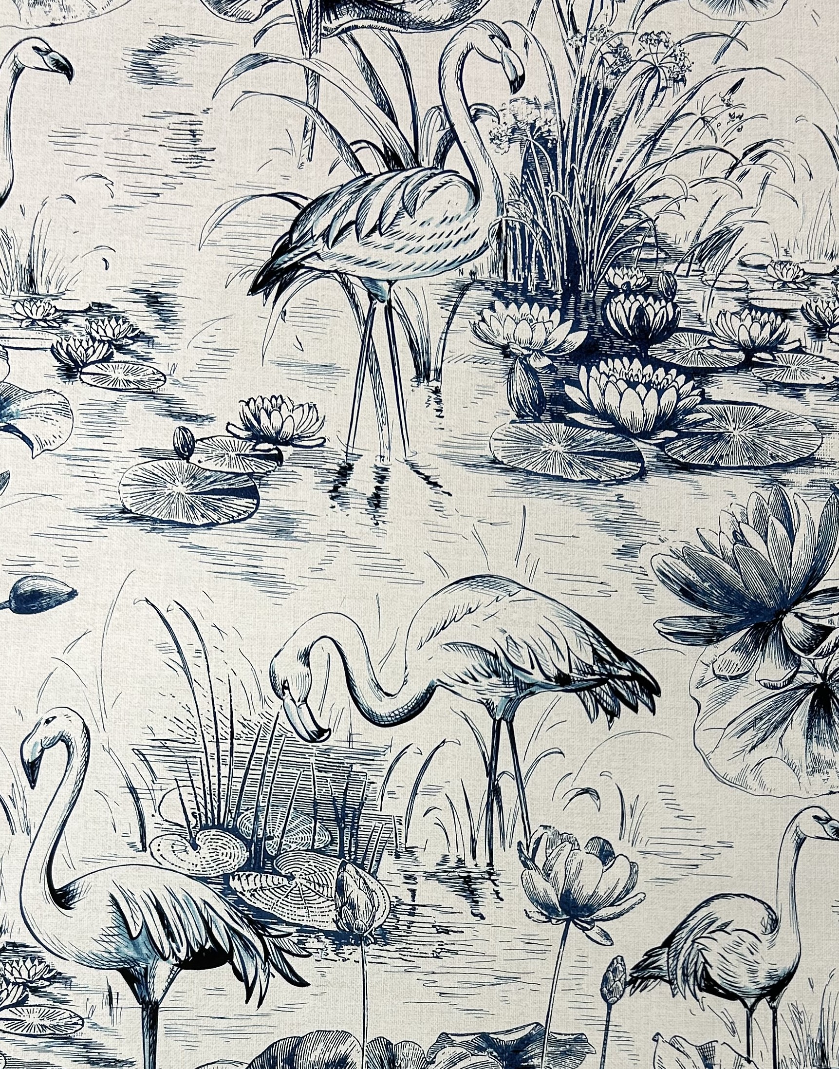 Printed on paper - A digital file in high resolution has been developed for Flamingo Toile design with the repeat 64x70 cm.