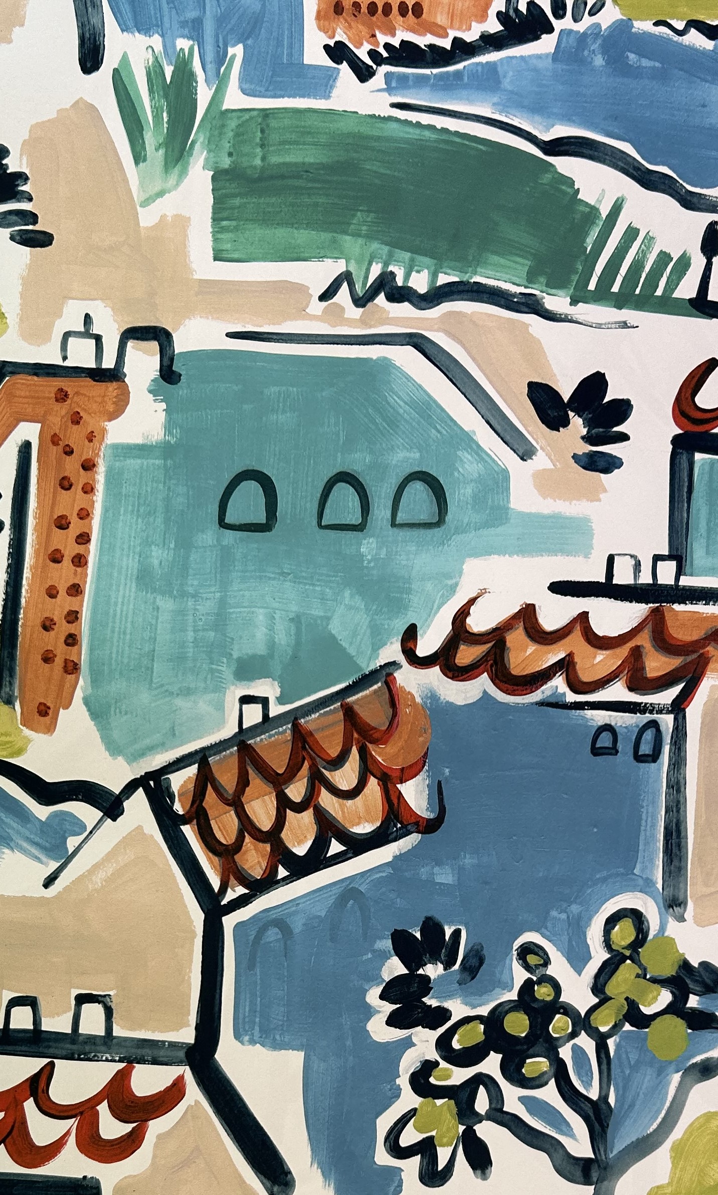 Printed on paper - A digital file in high resolution has been developed for Village design with the repeat 64x70 cm.